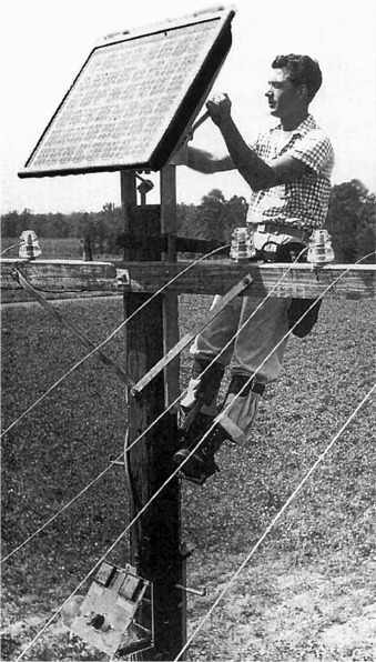 A major breakthrough was in 1950s. Three scientists at Bell Telephone Laboratories (Calvin Fuller, Daryl Chapin, and Gerald Pearson) developed a photovoltaic cell using extrinsic semiconductors. Their research achieved about 6% efficient solar cells. This was first presented in 1954 and marked the beginning of the commercial use of silicon solar cells. Today, about 22% efficiency is reported for solar panels. The photograph at the left is Bell Solar Module being installed in Americus, Georgia, for powering telephone repeater, April 1956. (Photo source – Solar Compass)